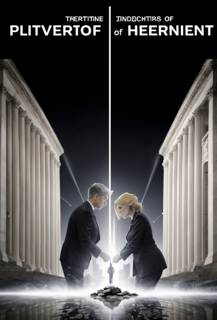 “The Brink of Silence” is more than just a cover; it is a striking tableau of a nation suspended between action and consequence, power and impotence, sound and silence. The government building, a symbol of unity and governance, is depicted divided – a visual metaphor for the ideological chasm between two rival political parties. The vibrancy of colors and the intricate detailing weave a narrative of a battlefield where words are weapons, and ideologies are fortresses.