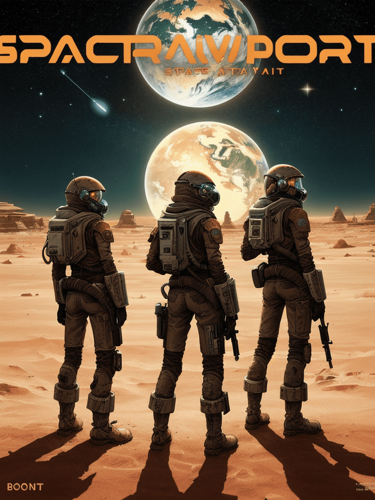 The spaceport, a monolith of rustic innovation, stands amidst the undulating dunes as a testament to a civilization that thrives amidst the silence of the celestial and terrestrial ballet. It’s not just a gateway to the stars but a silent custodian of tales untold, of cosmic cowboys that traverse the ethereal silence, their boots echoing the haunting yet beautiful sonnets of a space western saga.