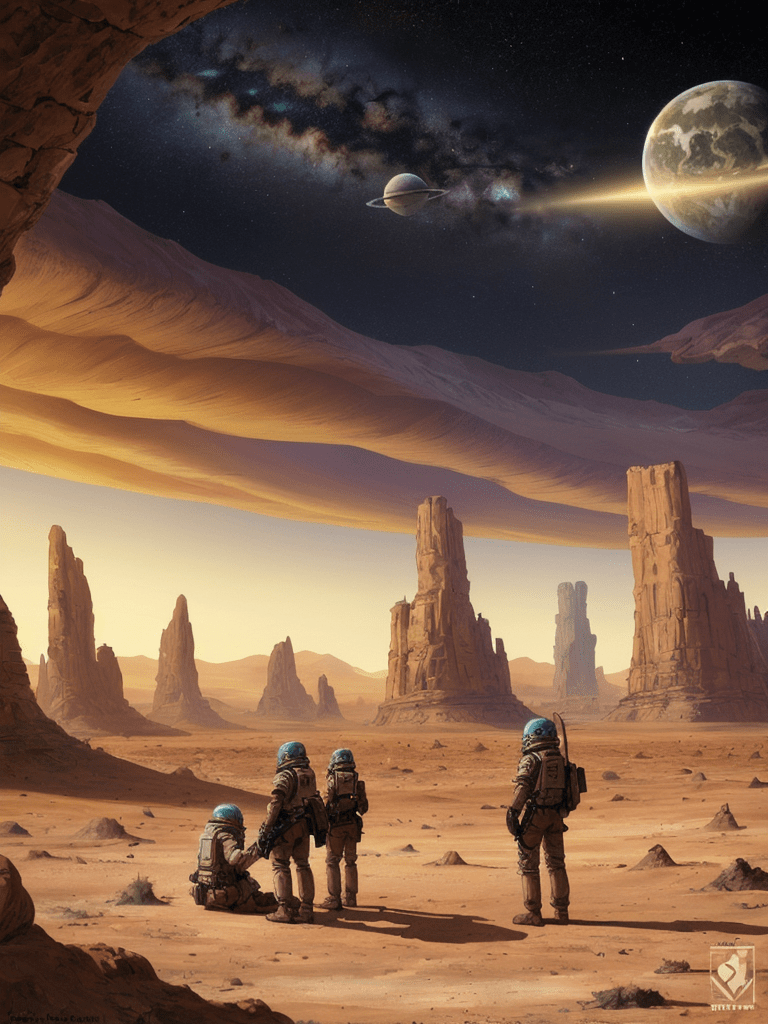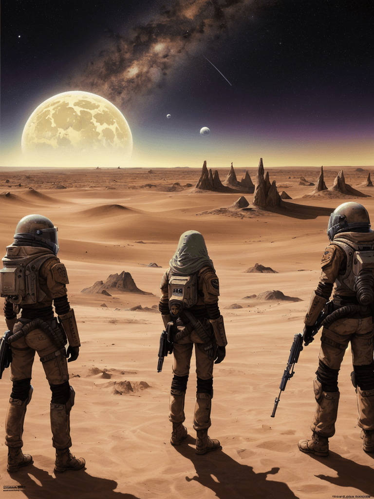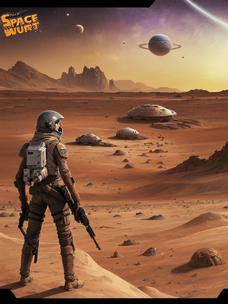 Amidst the vast and infinite dance of celestial bodies, where stars narrate silent sonnets of galaxies untold and worlds unseen, there lies a peculiar, enigmatic expanse – an arid desert painting earthy narratives on a faraway planet. It is here, amidst the swirling dance of sands tinted with earthly hues, where a saga untold, a space western, unveils its haunting melody.
