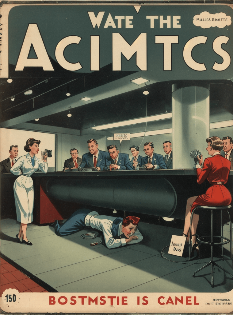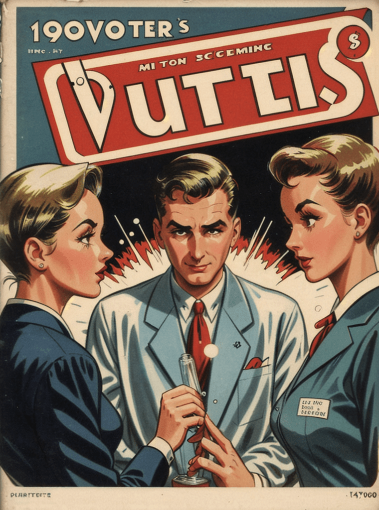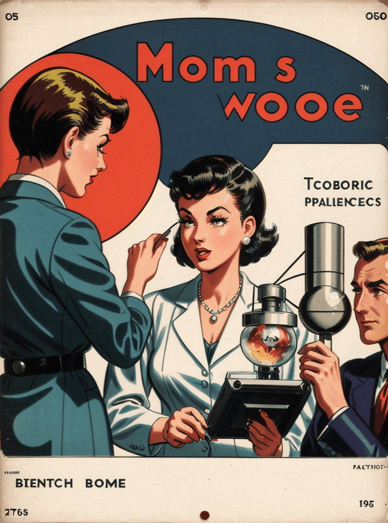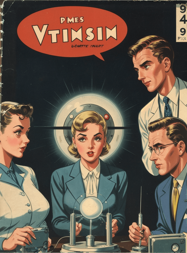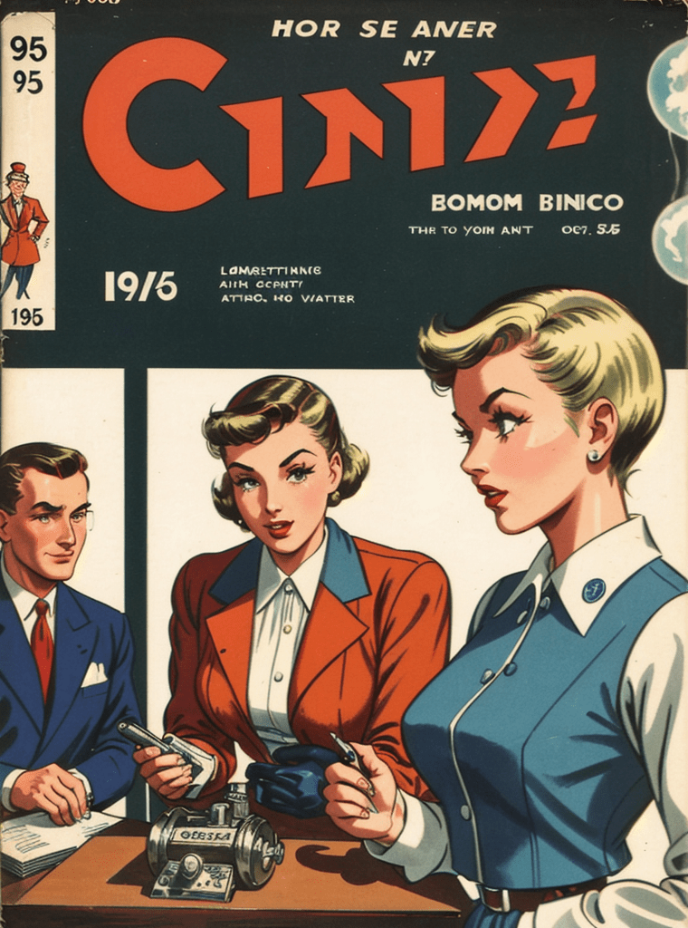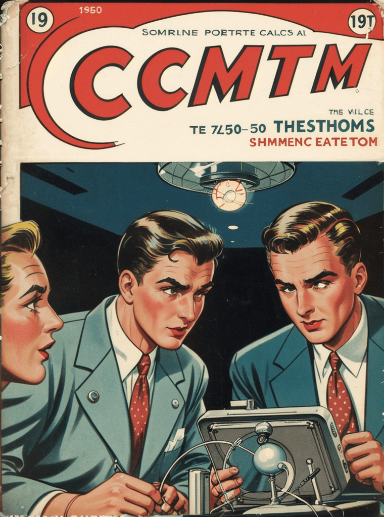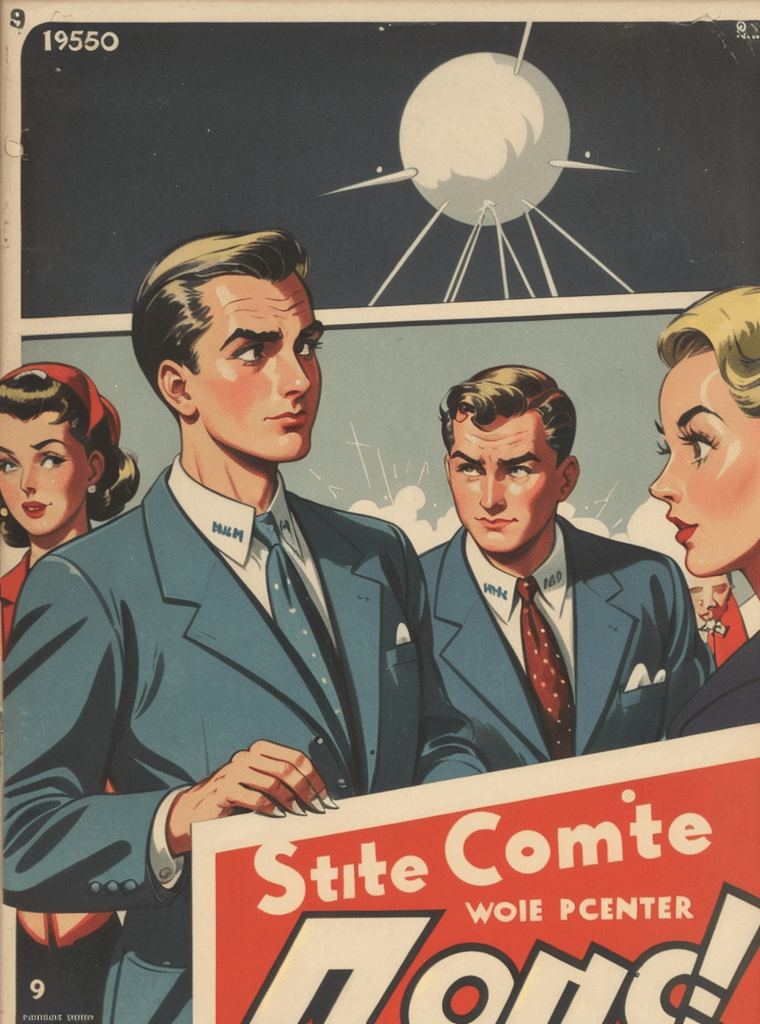 In the alluring and enigmatic landscape of the 1950s, amidst the boom of innovation and the silent whispers of Cold War tensions, a narrative of science, power, and sinister intentions unfolds — encapsulated exquisitely in the iconic comic book cover of “Echoes of the Atomic Dawn.”