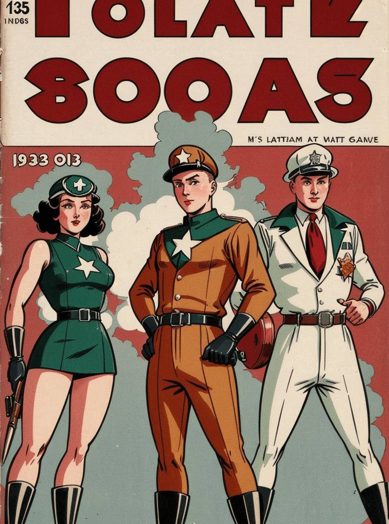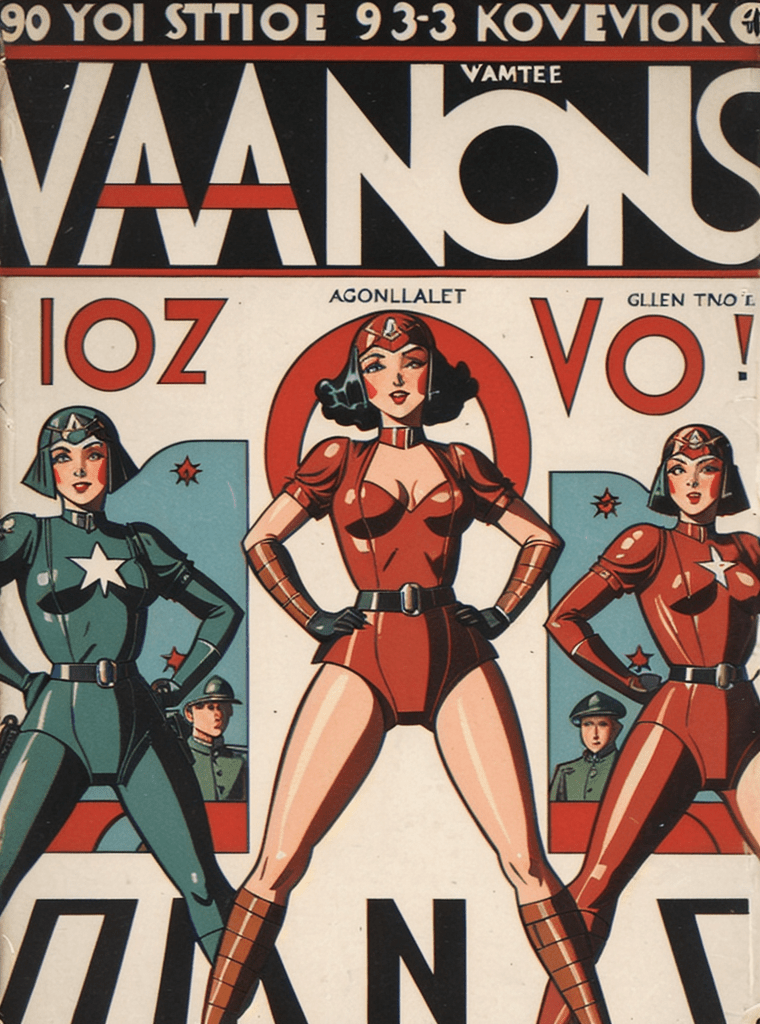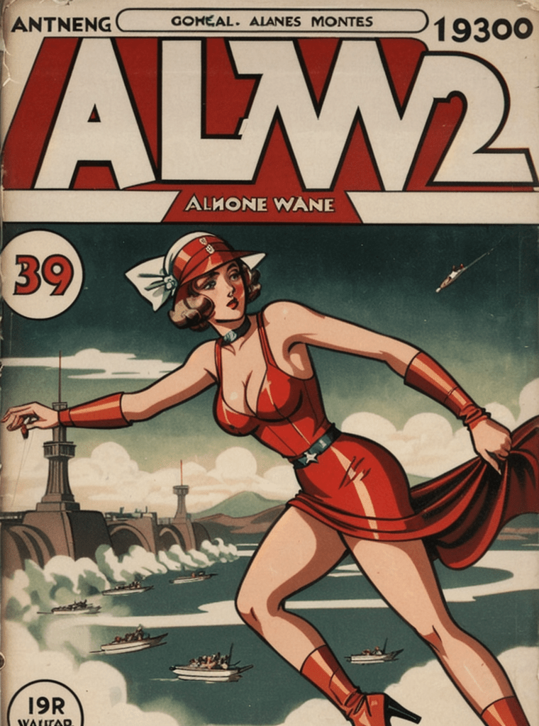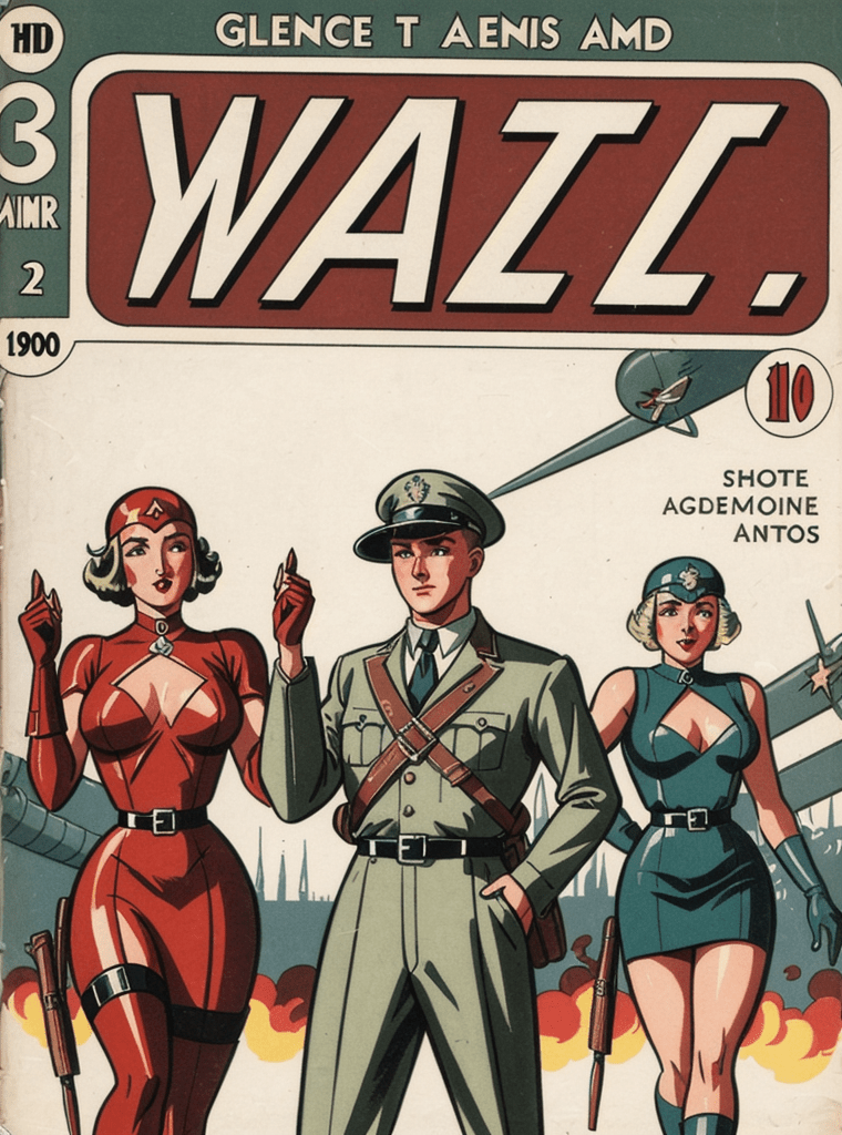 In the eloquent embrace of the 1930s artistic style, resplendent with elegance yet echoing the silent tumult of an era defined by global conflict, the iconic comic book cover of “Echoes of War” unveils a narrative as profound as it is poignant.
