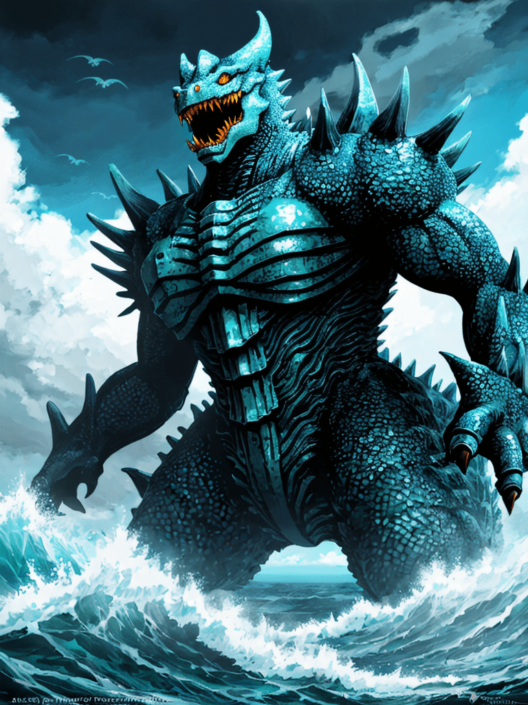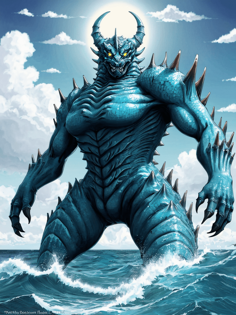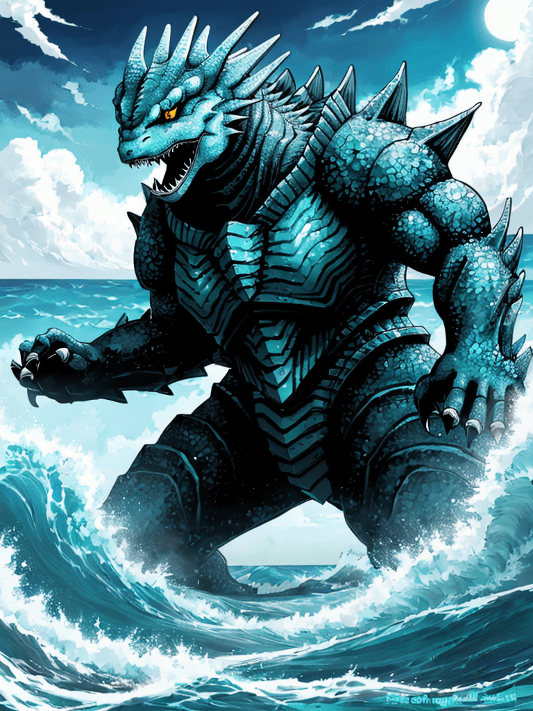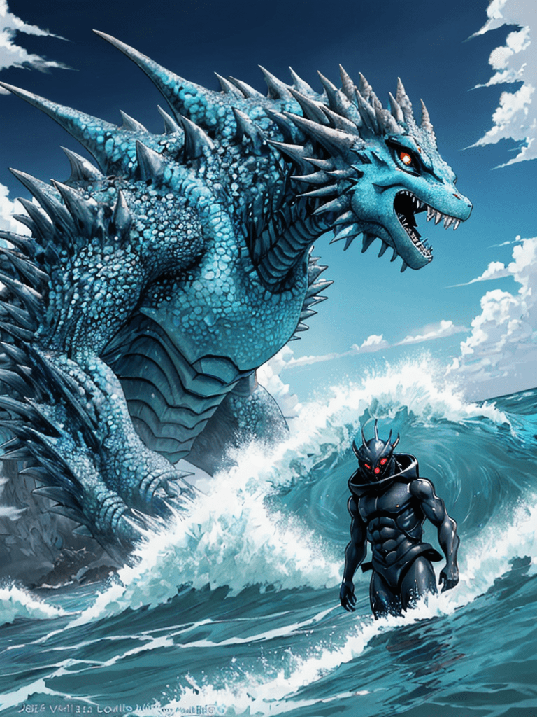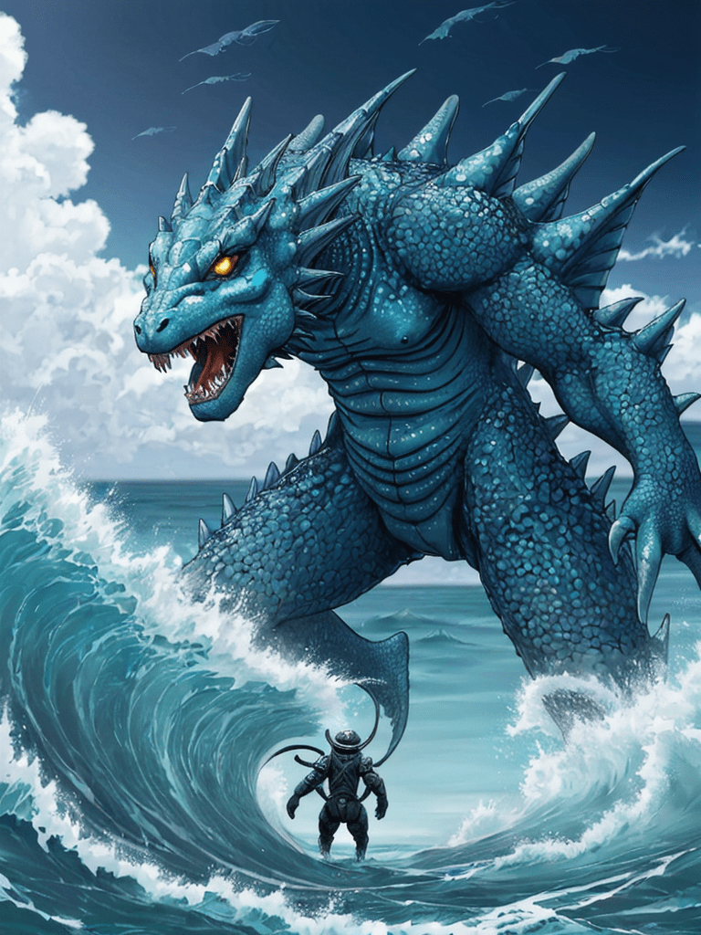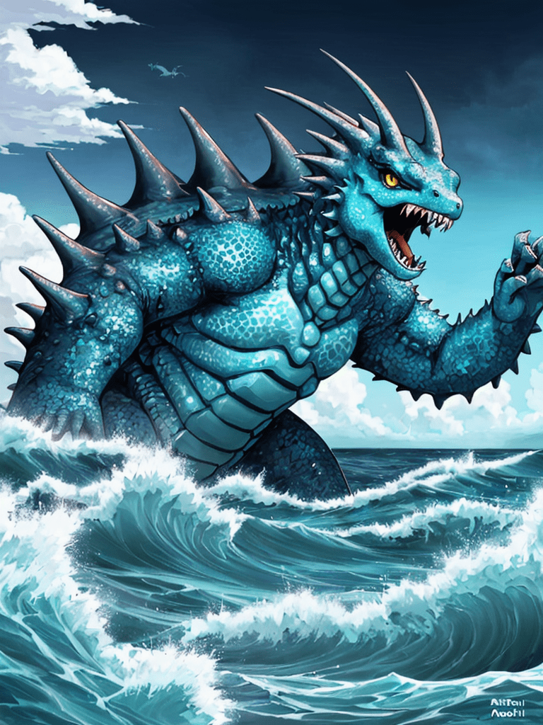 In a world where colossal sea creatures roamed, a legend emerged of the mightiest of them all, Azural, the Sea King. With scales shimmering like a myriad of oceanic gemstones and horns that mirrored the crescent moon, Azural was a force of nature—feared by many and revered by all.