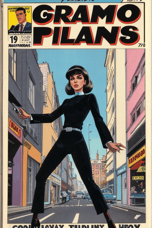 Moving to the second cover, the spotlight narrows to the enigmatic leader known as ‘The Black Widow of GramoPilans.’ Her gaze pierces through the heart of the city’s maze, a testament to the lone wolf within who thrives amidst the chaos of the urban jungle. In her hands, the line between lawbreaker and law is blurred—she’s the mastermind whose plans are as intricate as the jewels she covets.
