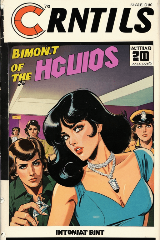 comic book cover. 1970s style. international diamond thieves. one final heist. will they succeed?